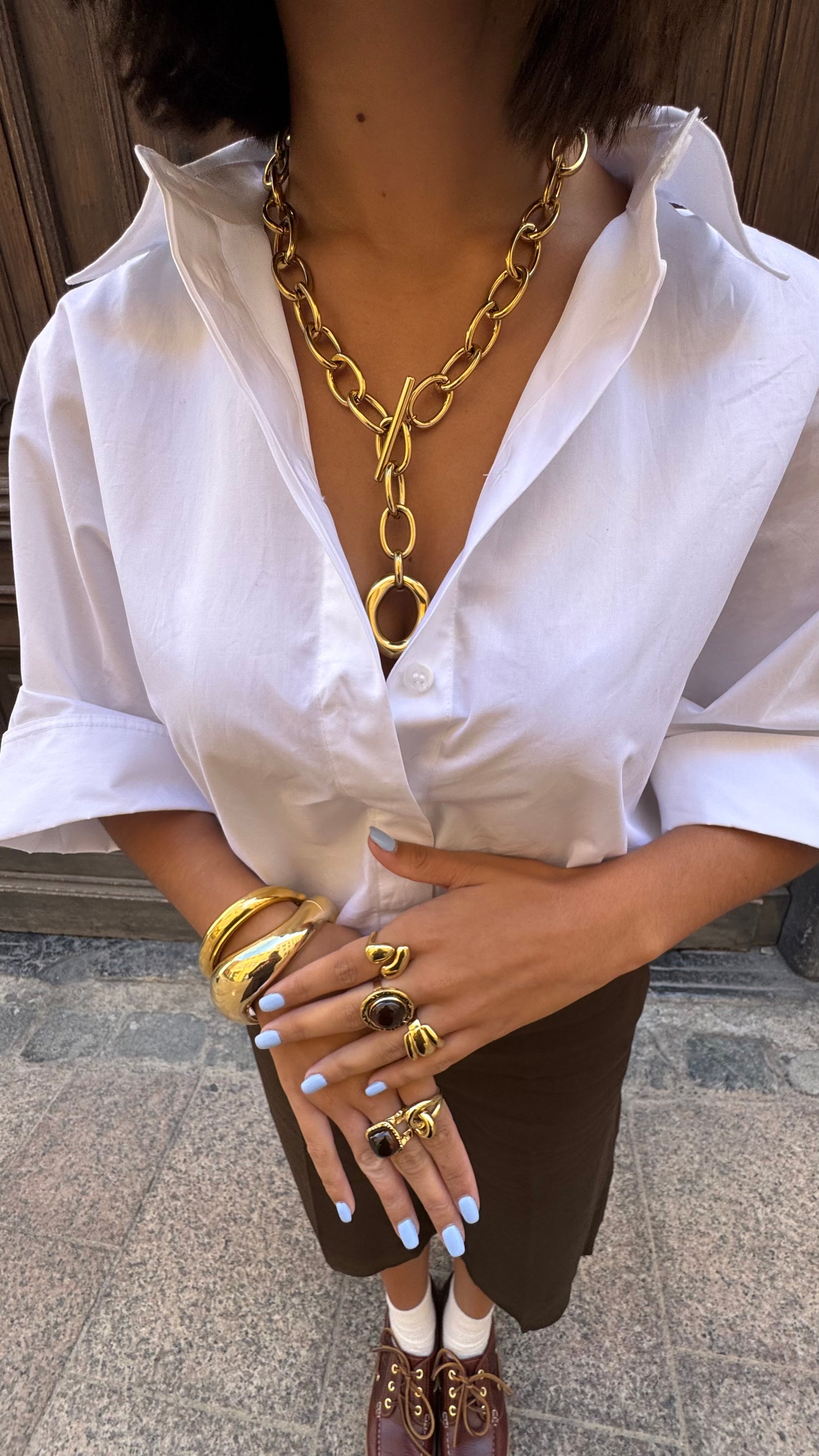 Bague carrée ajustable en acier inoxydable doré et marron. Élégance moderne et audace au bout des doigts 🐻